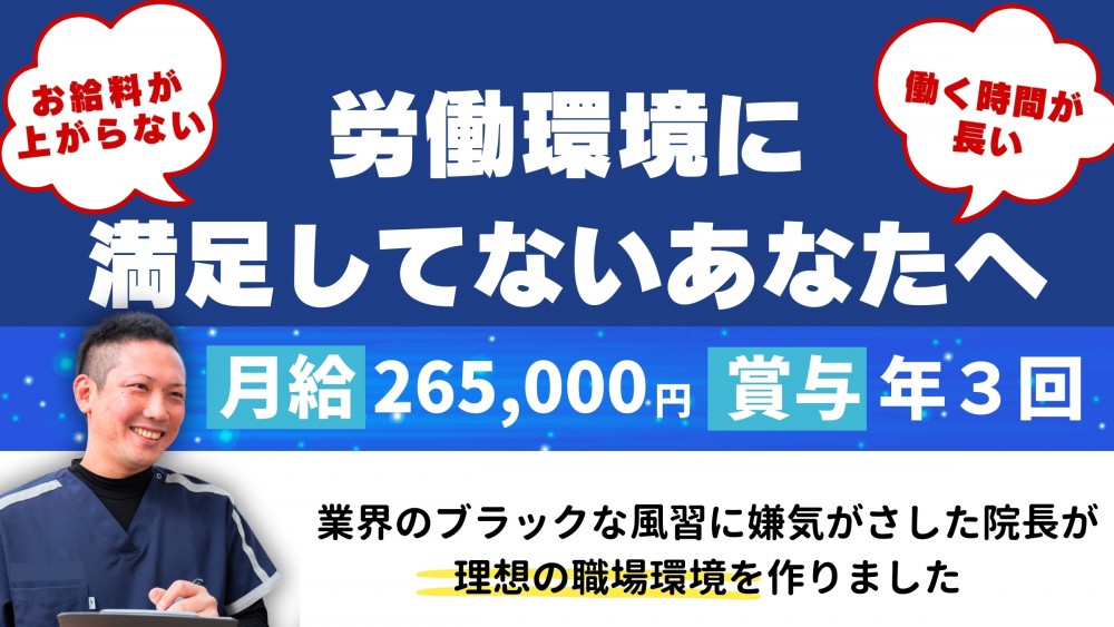 給与: 月給265,000円+賞与年3回(75万円/回の実績有)